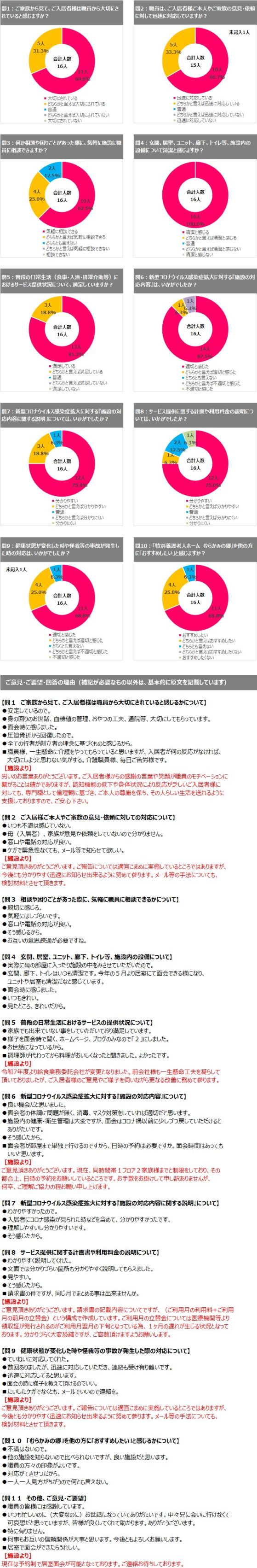 「むらかみの郷」では、ご入居者様・ご利用者様のご家族に、当施設・事業所より提供されるサービスの質を向上させる目的から、アンケートのご協力をお願いしています。ご協力頂きました皆様、この場をお借りして御礼申し上げます。誠にありがとうございました。