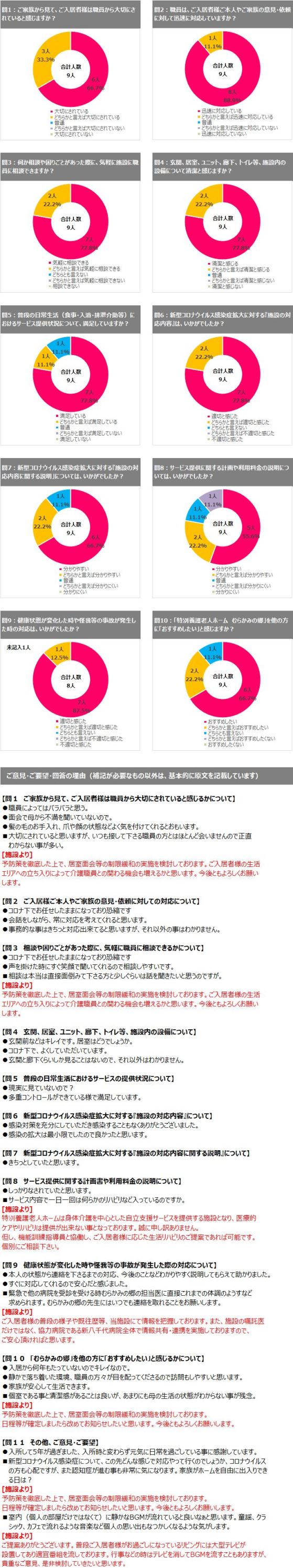 「むらかみの郷」では、ご入居者様・ご利用者様のご家族に、当施設・事業所より提供されるサービスの質を向上させる目的から、アンケートのご協力をお願いしています。ご協力頂きました皆様、この場をお借りして御礼申し上げます。誠にありがとうございました。